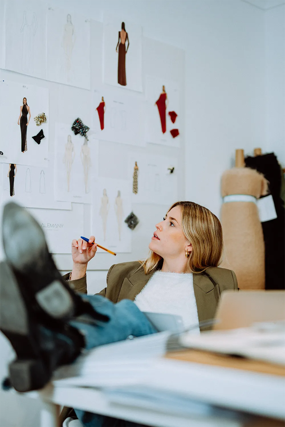 Alemany Studio nace de la mano de la diseñadora María Alemany en Mallorca. Al finalizar sus estudios de moda, en un momento de incertidumbre sobre hacia dónde dirigir su futuro profesional y mientras cursaba un máster de patronaje a medida, el proyecto surgió de forma inesperada. Comenzaron a llegar encargos de clientas que buscaban prendas únicas y hechas a medida.